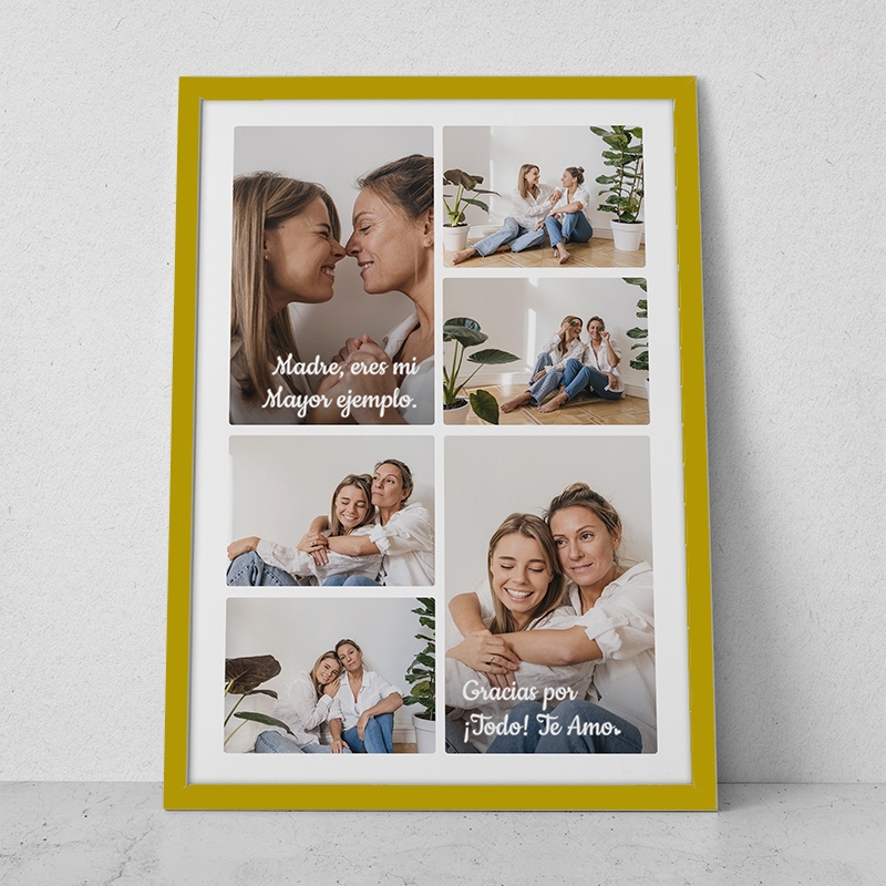 Fabricado con materiales de alta calidad, este cuadro no solo es visualmente atractivo, sino que también durará en el tiempo. Ideal para exhibir en cualquier rincón del hogar, el cuadro collage es un detalle lleno de significado, perfecto para cualquier ocasión especial.
